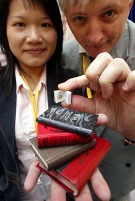 台北市现在正举行国际书展,迷你书收藏家斯科楚克(右)觉得这类书好收藏、易携带,且很精美漂亮(转自香港大公报,图片来源:台湾“中央社”)