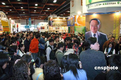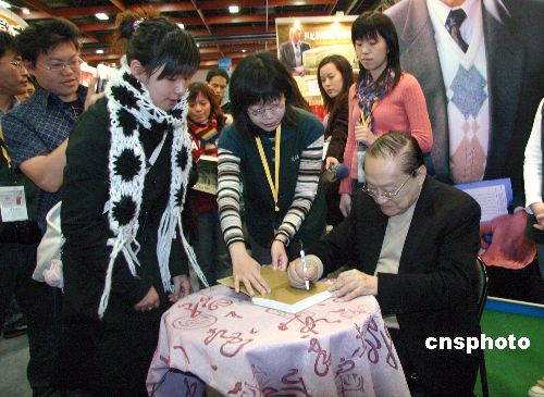 香港武侠小说大师金庸二日现身台北国际书展,在香港远流出版社摊位举行签书会,吸引了数百名金庸迷前来。中新社发 路梅 摄