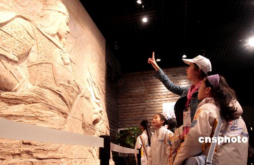 二月四日上午,参加“2007·阳光海峡——两岸快乐小天使活动营”的八十位台湾小朋友兴致勃勃的参观了闽台缘博物馆,对闽台两岸渊源有了更加直观、详尽的了解。中新社发 傅丹丹 摄