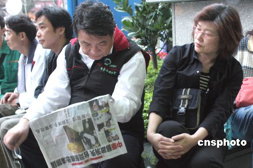 2月9日,台湾“中华邮政”公司工会成员身着工作服在阅读刊载该公司改名的报纸。在台湾当局的要求下,台湾“中华邮政”公司召开董事会议,拟更改章程,将“中华邮政”改名为“台湾邮政”,遭到公司工会成员到场激烈反对,要求协商保住这一有111年历史的金字招牌。董事会议四度更改开会地点,均遭到工会成员紧随抗议,最终在警察的层层保护下,才于“交通部”内举行,并通过改名。中新社发 黄少华 摄