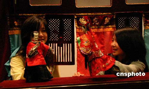 二月十五日下午,《我会演布袋戏》纪录片在台北一家视听室举行首播试演。该纪录片全程纪录了一位祖籍西藏的台湾十岁小女孩迷上布袋戏,在她加入就读学校的 “巧宛然儿童古典布袋戏团”后,从基本功开始,历经三年苦练,从跑龙套和打杂的角色,终于成了前场担纲演出头手的学习历程。中新社发 黄耀辉 摄