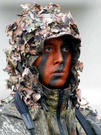 中新网3月9日电 据台湾《中国时报》报道,台军陆军航空特战指挥部8日在台南举行“归仁操演”。图为狙击手的作战伪装。(陈信翰)