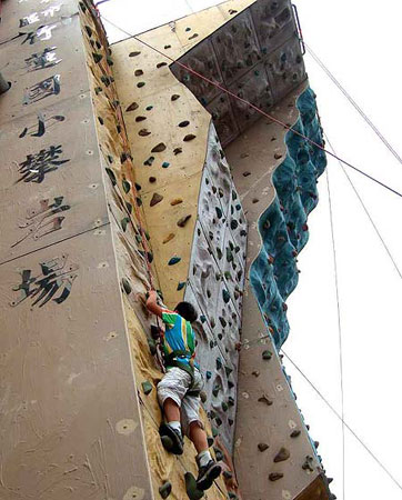 中新网3月14日电 据台湾《中国时报》报道,新竹市竹莲小学拥有全台湾最大的中小学攀岩场,足足有三层楼高的户外攀岩设备,让许多第一次攀爬的小学生玩得心惊胆跳。校方表示,今年的毕业班在毕业典礼上必须先挑战攀岩,过关之后才能领毕业证书。(陈爱珠)