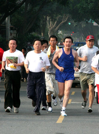 中新网4月28日电 据“中央社”报道,中国国民党前主席马英九28日清晨参加“为南投加油”健康晨跑活动。(曾立)