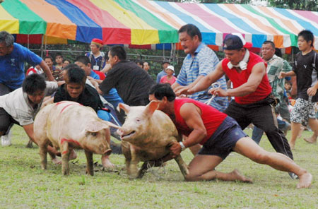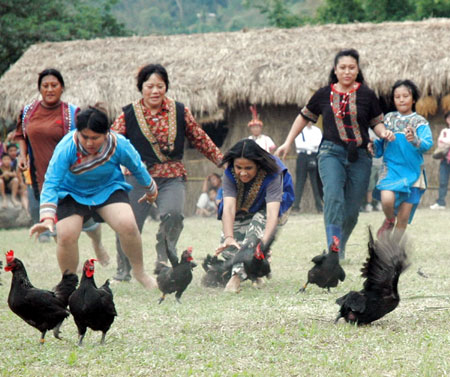 中新网4月28日电 据“中央社”报道,台东县延平乡布农族射耳祭28日登场,除传统祭典外,还举办了捉猪比赛,展现布农族猎人的英勇顽强,而捉鸡比赛则展现了布农族妇女灵活巧手。(卢太城)