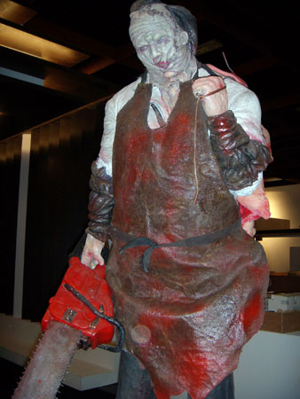 中新网5月18日电 据“中央社”报道,二00七年新一代设计展十七日在台北世贸中心举行,岛内共有四十多个高校七十个科系参展。大叶大学展出视觉艺术创作“德州电锯杀人狂”,打出“胆小勿视”口号,带给参观者惊悚视觉感受。(刘嘉韵)