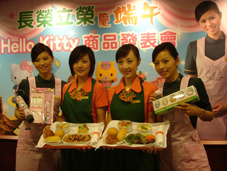 中新网6月11日电 据“中央社”报道,台湾长荣航空与立荣航空十一日举行记者会,展示端午节机上将提供的各式鲜肉粽、养生粽及长荣航空即将推出的Hello Kitty新机上商品。(汪淑芬)