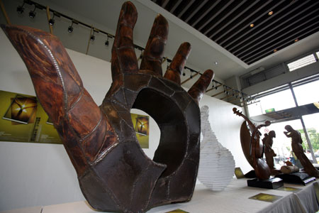 中新网7月25日电 据“中央社”报道,二00七三义木雕艺术节二十五日在台湾举行记者会,现场展示各种木雕作品,艺术节二十七日将在三义木雕馆开展。(张皓安)