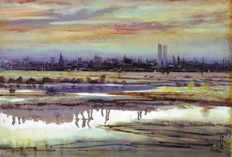 中新网9月26日电 据台湾《联合晚报》报道,身为台湾第一代西洋美术家的李泽藩,也是诺贝尔奖获得者李远哲的父亲,是曾经活跃于台湾艺坛的重要艺术家。今年适逢李泽藩百岁冥诞,从今起到明年元月6日,台北故宫将展出其代表作品76幅。图为李泽藩画作《纽约晚霞》。(黄玉芳)