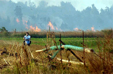 中新网10月18日电 据台湾《中国时报》报道,金门比邻古宁头战场的沙岗海岸雷区,十七日下午发生大火,引发十枚地雷先后爆炸,雷区火舌乱窜,民众骑车惊惶逃离现场。这场爆炸吓坏了古宁头的观光客,轰隆巨响在数公里外的金城闹区都可听到。沙岗雷区估计埋有一千枚以上的地雷,五年以来已发生三次雷爆事故。