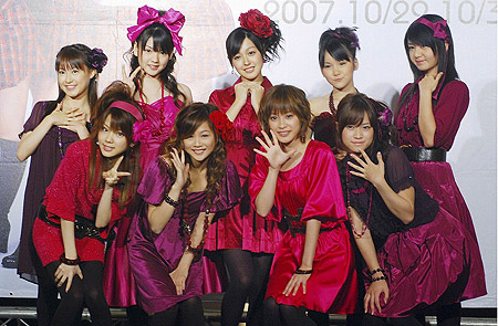 中新网10月31日电 据台湾《中国时报》报道,日本偶像团体“早安少女组”为宣传成军十年精选集,二十九日抵达台湾展开造势活动。图为早安少女组三十日于记者会上正式亮相。