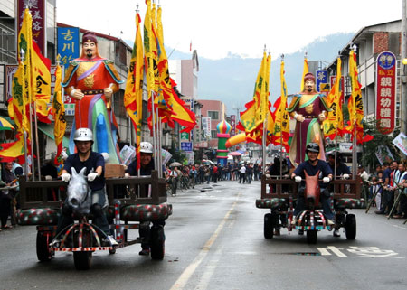 中新网11月8日电 据“中央社”报道,台湾南投县国姓乡文化季系列活动七日热闹展开,“抢成功”为最具文化特色的活动。比赛采推车竞速方式,一人坐上驾驶座控制方向,三人在后推动前进,竞争十分激烈。