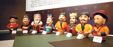 台湾第二届数字典藏商业应用大赛得奖作品公布,台湾艺术大学三年级学生倪敏,把历代皇帝变成Q版公仔(玩偶),创作《万岁爷——三皇五帝》系列公仔,勇夺人物玩偶设计组第一名。 《中国时报》图 李宗佑 摄