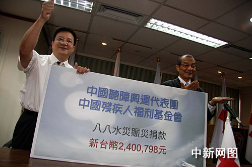 中新网台北9月8日电(记者 董会峰 刘舒凌)参赛不忘受灾同胞。8日上午,中国听障奥运代表团部分成员专程来到台湾红十字组织办公室,向“八八水灾”受灾同胞捐款240万零798元新台币。