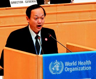 中新网5月20日电 台湾“中央社”发自日内瓦的报道称,当地时间19日下午,台湾卫生部门负责人叶金川首度在世界卫生大会(WHA)全体会议上发言。