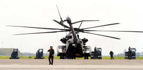 这架编号546MH-53E海龙直升机,属于防卫性装备,原配属美军大西洋第三舰队,直到2007年才调驻太平洋舰队,不过这两年已有过丰富救灾经验,支持过几次亚洲的人道救援行动。