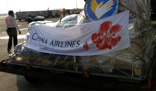 德国民间救援组织“航空无国界协会”捐赠1吨的毛毯、睡袋及帐蓬等人道救援物资,也于今天清晨6时40分运抵桃园机场。另外,加拿大政府将捐赠5万加币,并捐助20万枚氯锭,供灾区重建。