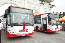 中新网2月26日电 据“中央社”报道,在台北县府补助下,台北客运已引进油电混合动力公交车,台北县长周锡玮及台北客运董事长李博文等人25日剪彩,首批15辆公交车上路,往返板桥与新庄的“99线”路线。