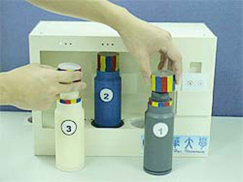 王志湖说,此装置就是将一般瓶子利用RFID(无线射频)技术,在盖子内内建信息,可以监测瓶子是否有被开过、取用时间、凭证管理等功能,工作人员若拿不对的凭证,则无法拿起瓶子。他表示,这种装置可应用在医药界、化学界、旅馆业等,这次参展时,其中一位俄罗斯评审对此发明特别感兴趣,因莫斯科的高级饭店,经常发生高价酒被开瓶,放入异物后伪造签封封起来,再向店家索讨高额赔偿金的犯罪案件。