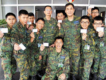 中新网4月22日电 据台湾《中国时报》报道,台军兰阳地区指挥官陈传远,发名片给每位服役士兵,并强调“手机24小时不关机,有问题欢迎来电。”5个月接到上百通电话、简讯。