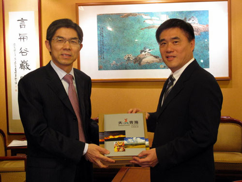 郝龙斌对青海省来台举办“大美青海台湾行”活动表示祝贺,并希望青海与台湾进一步加强各方面的合作交流,欢迎青海的企业来台投资发展。