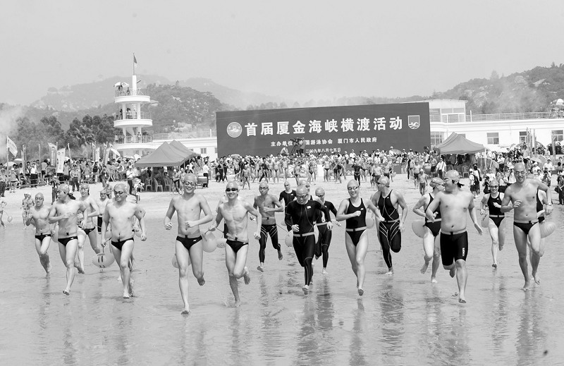 金门县府为促进两岸体育交流,继去年8月15 日举办2009金厦海域泳渡活动,两岸97名游泳选手从福建厦门游到小金门双口海滩,直线约6公里,今天规划扩大举办为金厦海峡横渡接力赛,改为由金门游向厦门。