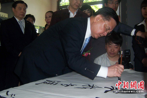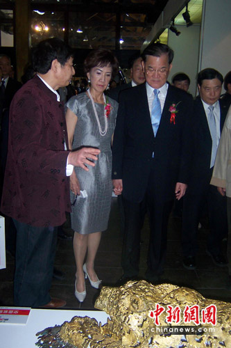 中新网杭州5月2日电(记者 汪恩民)5月2日,“朱炳仁、杨奉琛两岸两人艺术展”在杭州西湖博览会博物馆开幕,中国国民党荣誉主席连战出席了开幕仪式并亲笔题词道贺。