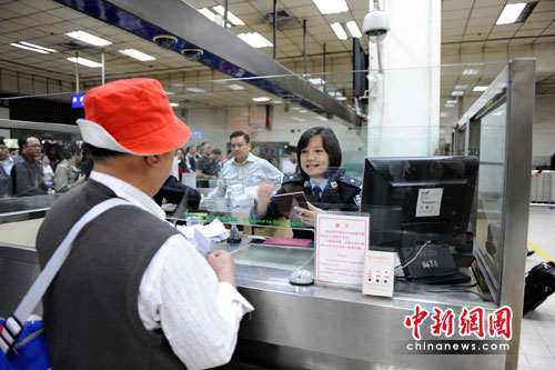 深圳出入境边防检查站民警在执勤中积极宣传公安部便利新举措,确保广大台胞从中得到实惠,通关更加高效、顺畅,并感受到边检机关贴心周到的服务和高效、顺畅、和谐的口岸通关环境。