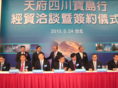 四川省工业经济联合会与工业总会、台湾区电机电子工业同业公会等川台经贸、旅游、农业、文化团体,上午共签署5份合作协议。“贸协”下午在台北国际会议中心举办川台采购洽谈会,预计安排上百场1对1洽谈。