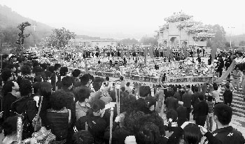 在东屿村,大家都把蜈蚣阁当成是村里的骄傲,还成立了蜈蚣阁表演理事会,专门负责蜈蚣阁表演的推广活动。这些归功于一位名叫郑吕嘴的古稀老人。老郑说,从小就喜欢蜈蚣阁的表演,如今掌握蜈蚣阁制作工艺的老艺人越来越少,而年轻人又不感兴趣,一直担心这门传统技艺会后继无人。为此,他一方面四处奔走,呼吁有关部门重视对蜈蚣阁技艺的保护,另一方面,他还把村里有蜈蚣阁制作技艺的人都召集起来,一起成立了蜈蚣阁表演理事会。