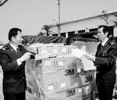6月1日,(福建)东山海关工作人员在查验台轮“上和1号”的入境货物。专业从事对台贸易的东山县新发贸易公司在全省率先创办台杂货(俗称“零担船”)快递业务。目前,台杂货进口业务已辐射到福建、广东等省的30多个县、市的台企。
