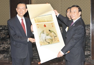 中新网6月12日电 据台湾《联合报》报道,浙江省长吕祖善率领的浙江省代表团十一日到新竹科学园区、工研院、台积电参访,中午与晚间分与台湾吕氏宗亲及中部三县市长、“立委”们餐叙。“立委”吕学樟以世界吕氏宗亲会理事长身份款待吕祖善一行,吕祖善回赠“吕祖谦全集”共十六册,他说从未遇过这么盛大的恳亲会场面,非常温馨。