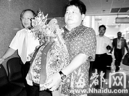 昨天早上,大甲镇澜宫董事长颜清标前往台中港送行,并抱着妈祖神像陪同上船;此次恭请包括大甲镇澜宫、桃园慈护宫及云林县麦寮拱范宫共三尊妈祖前往湄洲祖庙进香,并将配合举行妈祖文化周活动。镇澜宫还将代表台湾妈祖信众,在论坛期间提出一系列促进民间文化交流的建议,包括将邀请大陆北方的戏剧表演团体到台湾进行演出活动。 (记者 杨阳)