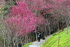 中新网2月21日电 据“中央社”报道,春节假期,台中县东势林场森林花园正值樱花季,满山都是姹紫嫣红的山樱花及各式花海,相当明艳动人,还可以赏鸟、泡泡脚,是新春假期出外踏青,走春的好去处。