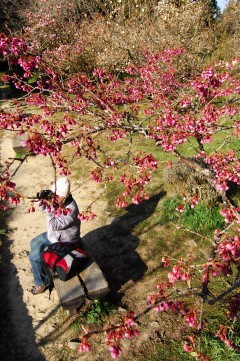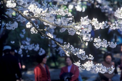 久闻阿里山是全台湾樱花最美的地方,光是从日本传来的染井吉野樱就多达1900多株,像是阿里山派出所、阿里山宾馆、沼平车站及沿线、贵宾馆、木兰园、林务局招待馆、三代木等处,都可以欣赏染井吉野樱花海如雪的踪影,三月中开始绽放、三月底进入盛开期的染井吉野樱,可说是阿里山樱花季最美丽的主角。高山地区湿冷多雾,使花瓣呈淡雪色、花心粉红的染井吉野樱看起来像是一层层晕染在山头的雪白云海,当山间微风掠过,迎面扑来如雪花般轻柔的樱花雨,弱不禁风的姿态让人觉得凄美的怅然。但若是天气晴朗的午后,黄昏前夕阳的光晕照射在樱花上,平常看起来脆弱嫩白的花瓣彷佛吸取了阳光精华,变成极为娇艳的粉红色,完全是截然不同两种花颜,令人惊诧。