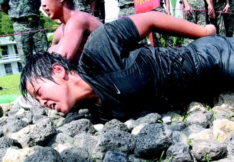 在郭诗玉之前,已经有五位志愿役女兵通过这个号称“天堂路”的考验,在六天五夜内连续通过长跑、蛙人操、海上操舟、海上长泳、漂浮、深潜、困难地形通过及胆识训练等课目鉴测。
