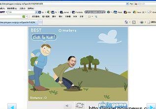 还有一款游戏则是设计让陈水扁半露臀部,由网友点击陈水扁身后的人物,点击后就会将脚踢向陈水扁的屁股,而且陈水扁还会往前飞出去,落地后还会评断游戏者的踢人力道,甚至还显示陈水扁被踢飞的距离,也令不少网友莞尔。