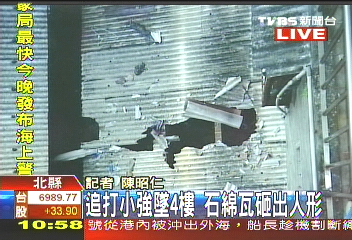 中新网8月5日电 据台湾TVBS报道,台北县莺歌一名吴姓男子,因在住家4楼抓了一只蟑螂,笃信佛教的他,为了把它放生,准备从4楼阳台往下丢。幸好有2层石绵瓦阻挡,男子摔到地上只有轻微脑震荡和擦伤,而被砸破的石绵瓦,恰巧变成一个人形破洞。