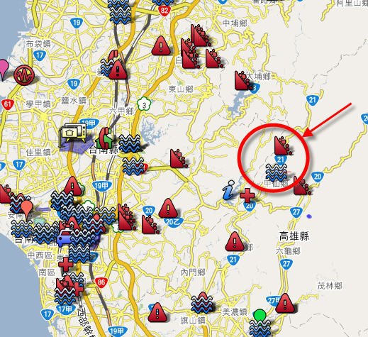据台湾《联合报》报道,高雄县的六龟乡草南村、甲仙乡小林村及旗山镇南寮巷三十多户村民,昨天疑遭土石流淹没。六龟乡中兴村传八民宅遭土石流淹没,脱险的高雄县消防局第三大队长苏定国说,十六名住户生死未卜。