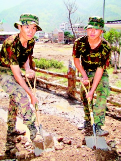 连日来,各地台军部队陆续进入桃源乡救灾,目前还有一百三十五名官兵留在断水断电的灾区,每天用山泉水洗澡,晚上睡在小学校园。