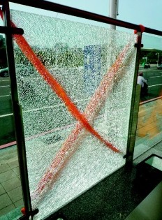 本月14日,美丽岛站靠高雄邮局的出入口,有一片玻璃全片碎裂,警方和捷运公司一度怀疑是天气太热才热爆了,但工程人员进一步检视,在离地面4米的高度,发现玻璃上有疑似被撞击点。