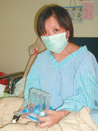 陈姓孕妇二十五岁,是岛内首例感染甲型流感后,使用叶克膜体外维生系统抢救的患者,虽然未能保住六个月大的胎儿,但她心存感恩:“活着真好”、“小孩再生就有”。