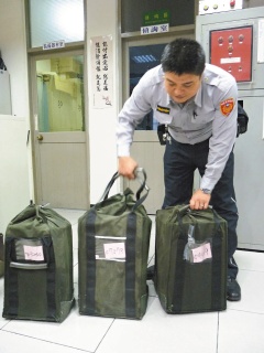 由于三袋东西就掉在路中,摩托车司机何炘见影响人车通行,冒着大雨把帆布袋搬到一旁骑楼,正好看到警员王爱荣、戴光昱骑警用摩托车经过,趋前挥手拦警,协助警察把三袋运钞袋载回信义警分驻所。
