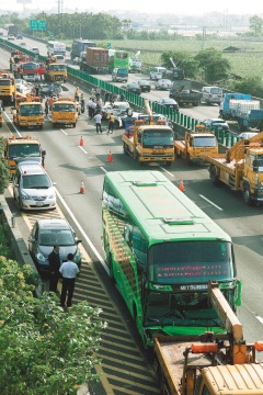 接连两起车祸,回堵车阵更严重,事故处理前后长达十九小时。参与槽车处理的人员指出,毒灾处理安全第一,不能像一般车祸求快,耗费时间是必然的。