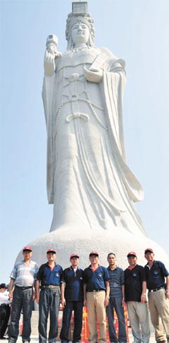 县府文化局专员吴晓云说,县府大力争取当局支持兴建妈祖巨神像,并邀请“立法院长”王金平出任筹备会荣誉主委,今年6月动土兴建,10月初完成高达28.8公尺的巨像,全部以花岗岩打造,是全世界最高的妈祖巨石神像,日前举行开光仪式,25日于“妈祖升天祭”大典中正式揭幕。