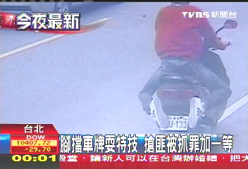 监视器里面拍到的影像,就是他行抢过后,连续表演特技骑了4、5个路口。这招当然没用,警方循线逮捕罗姓嫌犯之后,不但以抢夺罪嫌移送法办,还多开了一张危险驾驶的红单。(芮文辉)