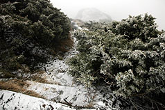 至于赏雪圣地合欢山,16日只在上午8时短暂下了夹杂雨水的雪,落地即融化。今天则在凌晨2时左右间歇性飘雪,武岭至合欢山庄一带山壁可以看到约1公分的积雪。