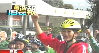 穿起牛仔裤、一身轻便装扮的周美青,南下来到嘉义和偏远地区的小朋友来趟自行车之旅,跨上自行车,她的身手可把不少身边的人都比了下去。