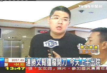 连胜文住院开刀的消息,是在台北荣总中正楼三楼手术等候室曝光,当时该等候室的“病患手术动态屏幕”,跑马灯秀出连胜文的名字,有病家看到北荣高层向连战夫妇说明病情。
