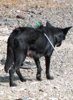 救援小组志工倪京台指出,1名网友18日出游行经乌溪南岸西滨中彰大桥下方,赫然发现一只刚生产完、仍在哺乳的流浪小黑狗,背部疑似被十字弓的利箭射穿,背部肿胀发炎,立即通知救援小组前往营救。